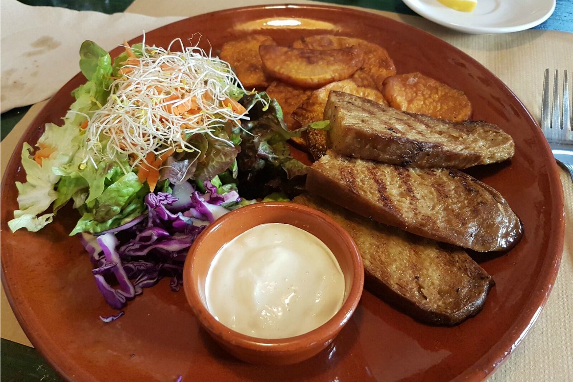 Ich habe auch andere Gerichte der kleinen Speisekarte probiert. Die gegrillten Seitansteaks waren auch lecker, kommen aber nicht ganz an den lustigen bunten Teller mit Omelette aus Kichererbsen und Frito Mallorquin ohne Innereien heran. Der Variant-Teller fällt jedes Mal etwas anderes aus, deshalb lasst euch einfach überraschen.