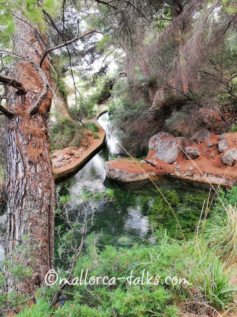 Von 1908 bis 1962 wurde das Elektrizitätswerk betrieben. Gespeist von der Quelle Font des Verger rauschte das Wasser durch dicke Stahlrohre und trieb riesige – heute mächtig rostige – Turbinen an. Wer ein bisschen kletterfreudig ist, kann durch einen Tunnel vom Meer aus in das alte Maschinenhaus gehen. Es ist völlig unbeleuchtet, aber eigentlich immer offen. Heute bieten die großen Überlaufflächen tolle Wiesen zum Verweilen. Die große Staubecken sehen aus wie verwunschene Bergseen und wäre es nicht schon so kalt gewesen … vielleicht hätte ich sogar mal die Füße reingehalten.